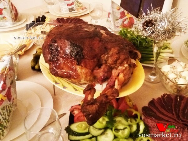 Часто домохозяйки на праздничный стол желают приготовить мясное блюдо целым куском в духовке, так как такое блюдо более эффектно и аппетитно смотрится на столе. Но блюда из больших кусков мяса имеют свои тонкости приготовления, не зная которых вы просто испортите мясо и свое настроение))). Сегодня мы попробуем своими советами и рекомендациями помочь всем домохозяйкам приготовить свиной окорок весом 6 кг в домашней духовке. Оптимальным для приготовления в домашних условиях является свинина весом от 5-и до семи кг. Чтобы шаг за шагом посмотреть как надо мариновать и запечь свиной окорок целым куском в духовке, просим перейти на страницу "Свиной окорок в фольге".