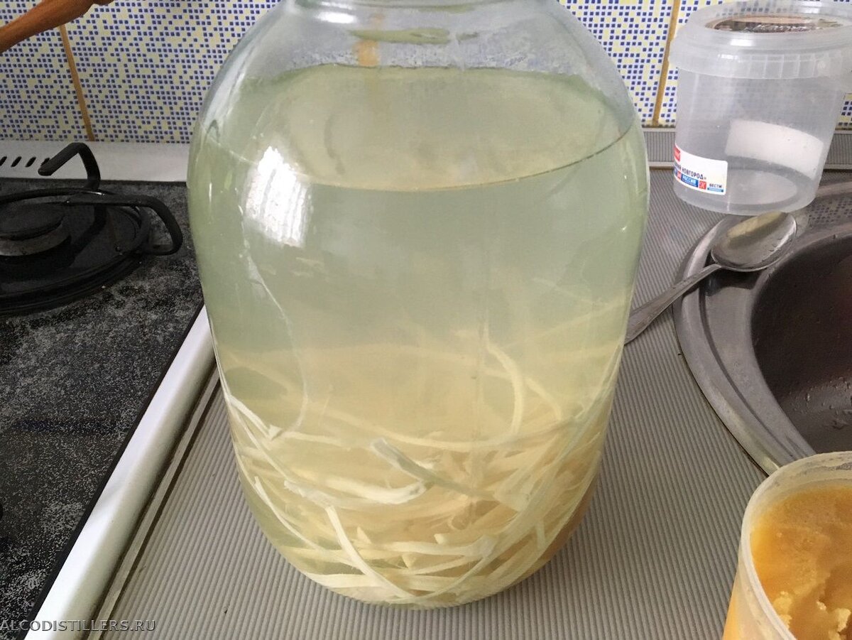 Режем хрен. Я режу вдоль как можно тоньше. Кто-то трет на терке для быстроты. Мне не очень нравится так как слишком быстро хрен отдает свою крепость в напиток. Заливаем самогоном и уже через пару дней следим за тем как меняется вкус. Обычно достаточно двух – трех недель. За месяц уже можно передержать. Первое время будет пугающих аромат хрена, натурально сшибающий с ног. Не пугайтесь. Разлитый в бутылки напиток постоит и ослабнет.