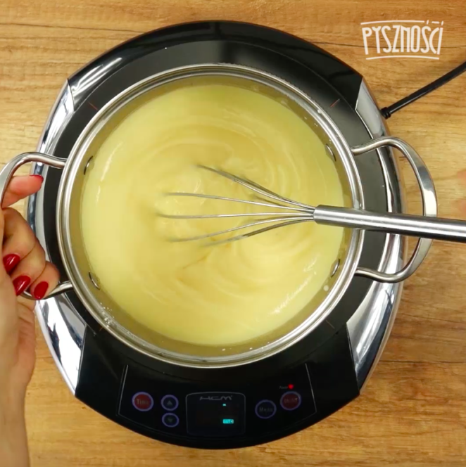 Вылейте молоко в кастрюлю и растопите в нем 2 пачки ванильного пудинга.Затем добавьте сахарную пудру и масло. Перемешайте, пока масса не станет однородной консистенции.
