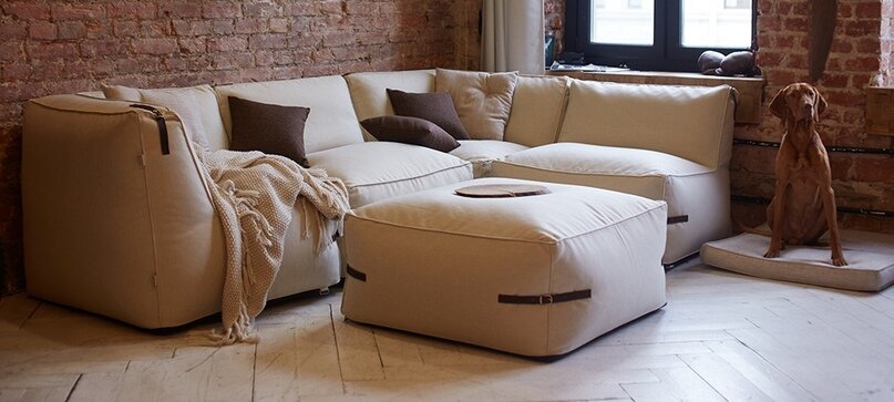 В современной мебельной индустрии отдельную группу представляет бескаркасная мебель, получившая такое название благодаря отсутствию жёсткой основы. Модульные диваны, кресла, пуфы и лежаки удобны, практичны и функциональны. Сегодня мы более подробно разберёмся в этом вопросе. Не забудьте поставить лайк после прочтения статьи Особенности бескаркасной мебели Конструкция такой мебели проста: каждая из моделей представляет собой мешок, наполненный шариками из полипропилена различной плотности и размера. Чем выше плотность наполнителя, тем жёстче будет кресло или пуф. Полипропилен не содержит вредных для человека веществ, в нём отсутствуют соединения тяжёлых металлов. Срок эксплуатации этого полимера — до 10 лет. Второй элемент конструкции — съёмный чехол, который изготавливается из различных видов ткани: вельвета, экокожи, хлопка, велюра, жаккарда, оксфорда и других. Благодаря этому мебель легко содержать в чистом виде — сменный чехол можно чистить и стирать. Характерное свойство таких