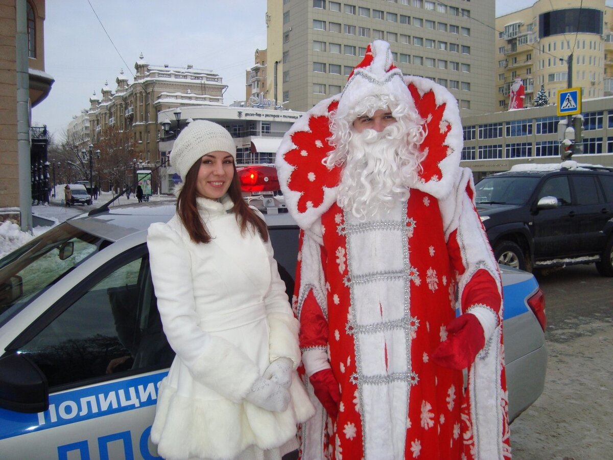 Сегодня сотрудники ГИБДД провели акцию «Новогодний патруль», во время которой Снегурочка с Дедом Морозом поздравляли всех пешеходов, пассажиров общественного транспорта и водителей с предстоящими праздниками. Кроме того, они напомнили им о правилах дорожного движения. Новогодние персонажи и полицейские поговорили с родителями, переходящими улицу Радищева возле консерватории. «Бывали случаи, когда ребятишки падали с санок. По правилам ребенка необходимо взять на руки во время перехода на противоположную сторону дороги», — заметила Виктория Вещеулова инспектор управления ГИБДД по Саратовской области. Виктория Вещеулова (слева)
