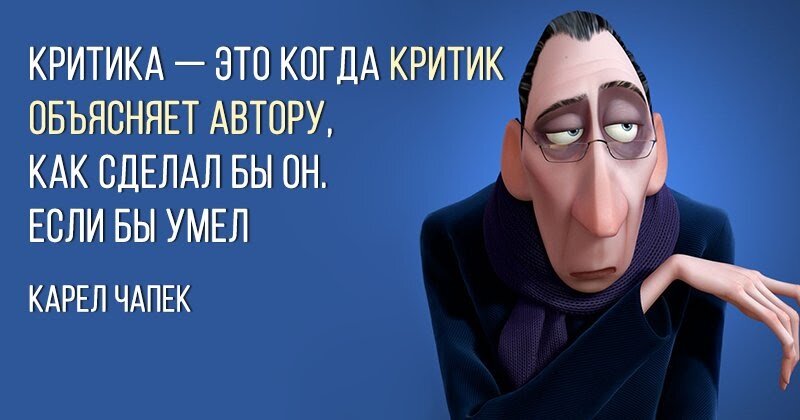 Определимся с определениями, что есть критика, а что есть критиканство: Критика – это конструктивный независимый анализ. Критиканство – Свойство критикана, придирчивая критика. Одно дело - разумная критика, другое дело - пустое критиканство. Критиканство с развитием России становится новой отдушиной для тех, кто не вписывается в новую реальность. Некоторые актеры, бизнесмены и бывшие чиновники пытаются доказать всем, что страна катится на дно, при том, что на дно скатились они сами. Как алкоголик пытается доказать всем, что все остальные хуже него, чтоб самому почувствовать себя человеком и оправдать свои пороки. По лицам некоторых товарищей из числа "критиков всего и вся" заметно, что злоупотребляют. Возможно из-за своей невостребовательности и завышенных ожиданий в настоящем в отличии от своего благополучного прошлого - бывших ролей, статуса и должности. Только вот критика бывает разной. Одно дело обратная связь между производителем и потребителем, властью и народом, режиссеро