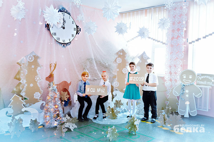 Гомельские школьники создали новогоднюю фотозону из картонных коробок