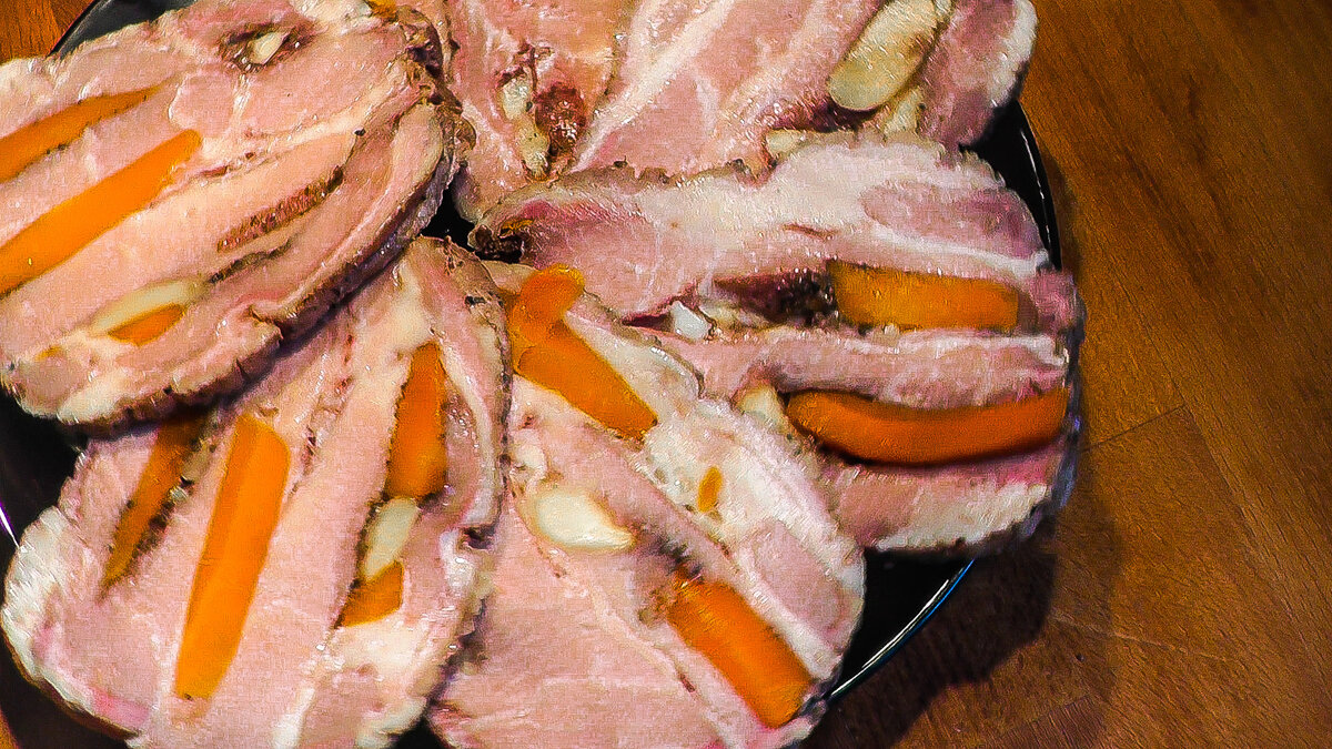 Что такое буженина точно не знает никто. Но, все уверены, что это замечательная мясная закуска. И да, это, действительно, очень вкусно! Готовится буженина из свинины. А, бывает, что из говядины, из баранины, или даже медвежатины… Бывает варенная буженина, а бывает, что её запекают. Вариантов приготовления – очень много. Но, это всегда большой и очень вкусный кусок мяса, который подают как горячим, так и холодным. И сегодня мы приготовим замечательную буженину, приготовленную методом томления. Это будет очень нежная и праздничная мясная закуска. Обязательно приготовьте буженину к празднику! Порадуйте себя и своих близких. Ингредиенты: Мякоть свинины - 1,5 кг или больше Морковь – 3шт. Чеснок – 5зуб. Перец черный – 3гр. Лавровый лист – 5шт. Кориандр – 5гр. Соль – 30гр. Приготовление: Соль и специи доводим до кипения Дожидаемся полного остывания Заливаем мясо маринадом и убираем в холод на сутки Чеснок и морковь крупно нарезаем Смешиваем с черным перцем и солью Шпигуем мясо