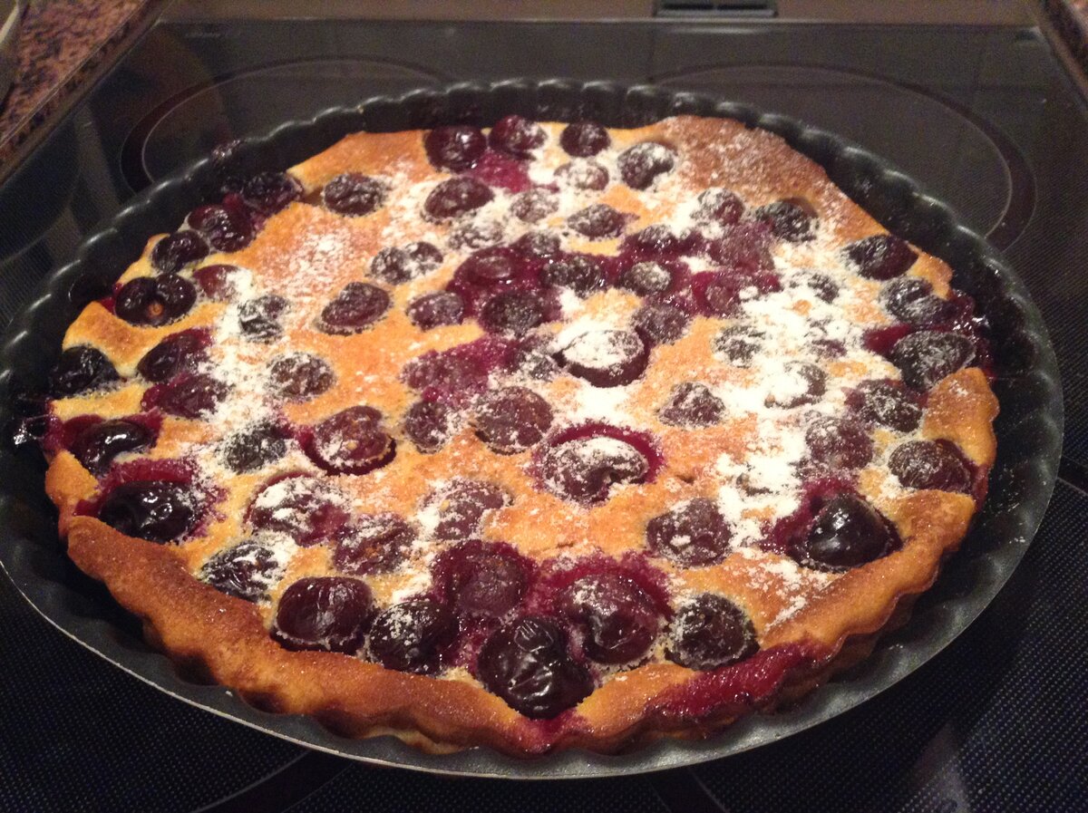 Всем привет! После сегодняшнего салата и пирога с семгой, хотелось бы завершить трио французским десертом клафутти с вишней. Тесто у этого десерта жидкое, похоже на блинное и десерт получается похожим и на пудинг и на пирог одновременно) Вишню или черешню можно взять замороженную и предварительно разморозить. Если вы используете свежую вишню, не удаляйте косточки, так пирог получится более сочным!( не забывайте конечно избавляться от косточек, когда будете его есть:)) Нам понадобится: -примерно 400 грамм вишни или черешни -100-125 грамм муки -3 яйца -250 мл молока -100 грамм сахара -3-4 грамма разрыхлителя -ванильный сахар или ванильный экстракт (немного) -сливочное масло для смазывания формы -сахарная пудра для посыпания клафутти (по желанию) Форму смазываем маслом и выкладываем вишню. Взбиваем вместе венчиком или в блендере муку, разрыхлитель, сахар, яйца и молоко до однородной массы, выливаем полученную смесь на вишню, распределяем ровно вишню. Сверху посыпать ванильным сахаром (и