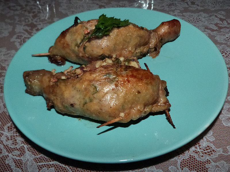 Куриные голени, фаршированные стручковой фасолью и крабовыми палочками