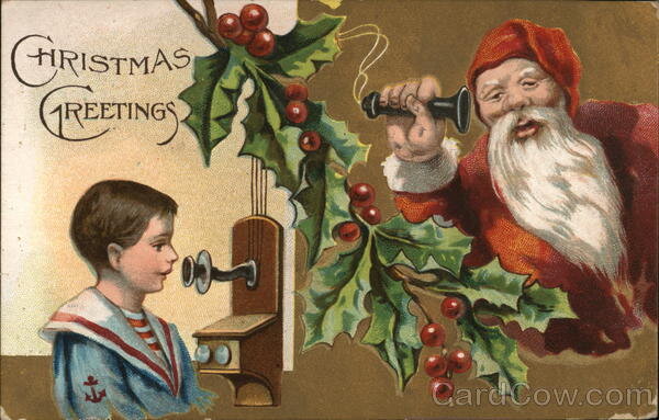 (тематическая подборка старых открыток) Однажды ученые, которым нечем было заняться, подсчитали, что Дед Мороз (ну, или Санта) должен проехать на санях 510 млн. км со скоростью 10703437,5 км/ч, чтобы успеть положить всем детишкам подарки под елку в новогоднюю ночь. Неудивительно, что дедушка поспешил воспользоваться плодами технического прогресса еще на заре 20-го века. Например, он стал принимать заказы на подарки не в старомодных письмах, а по телефону и по рации. Оленей он отправил пастись в тундре, а сам пересел на мотоцикл... дирижабль... аэроплан... ... и даже десантировался на парашюте прямо в печную трубу. Мчался на поезде... автомобиле... ... и даже трамвае. Во второй половине 20-го века он освоил и космический транспорт, но это уже совсем другая история... С наступающим!