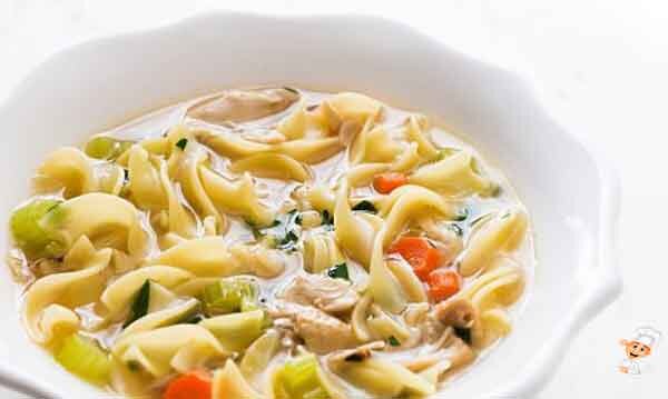 По мнению специалистов, куриный суп позволяет решать проблему не только с простудой (в холодную погоду), но и с похмельем после проведенных праздников. Так что, есть несколько вариантов развития событий. Конечно же, на чем остановиться вам, решите вы сами, и всё же, куриный суп с лапшой – считаю не худший вариант! Рекомендую, берите на заметку и обязательно попробуйте. Как приготовить куриный суп и что для этого потребуется, смотрите далее… Необходимые ингредиенты для блюда (на 8 порций): · 1,6 кг мяса курицы; · 5 стеблей сельдерея; · 5 морковин среднего размера; · 300 гр. лапши; · Одна луковка (репкой); · 5 горошин черного перца; · Один пучок петрушки; · Три дольки чеснока; · Соль на свой вкус. Способ приготовления блюда: 1. Для начала разбираем тушку курицы на отдельные части. Закладываем в кастрюлю мясо (кроме грудки, её откладываем в сторонку), заливаем водой и доводим до кипения. 2. Варим мясо порядка 3-х минут, затем сливаем воду через сито, она нам не потребуется, а мясо мы бу