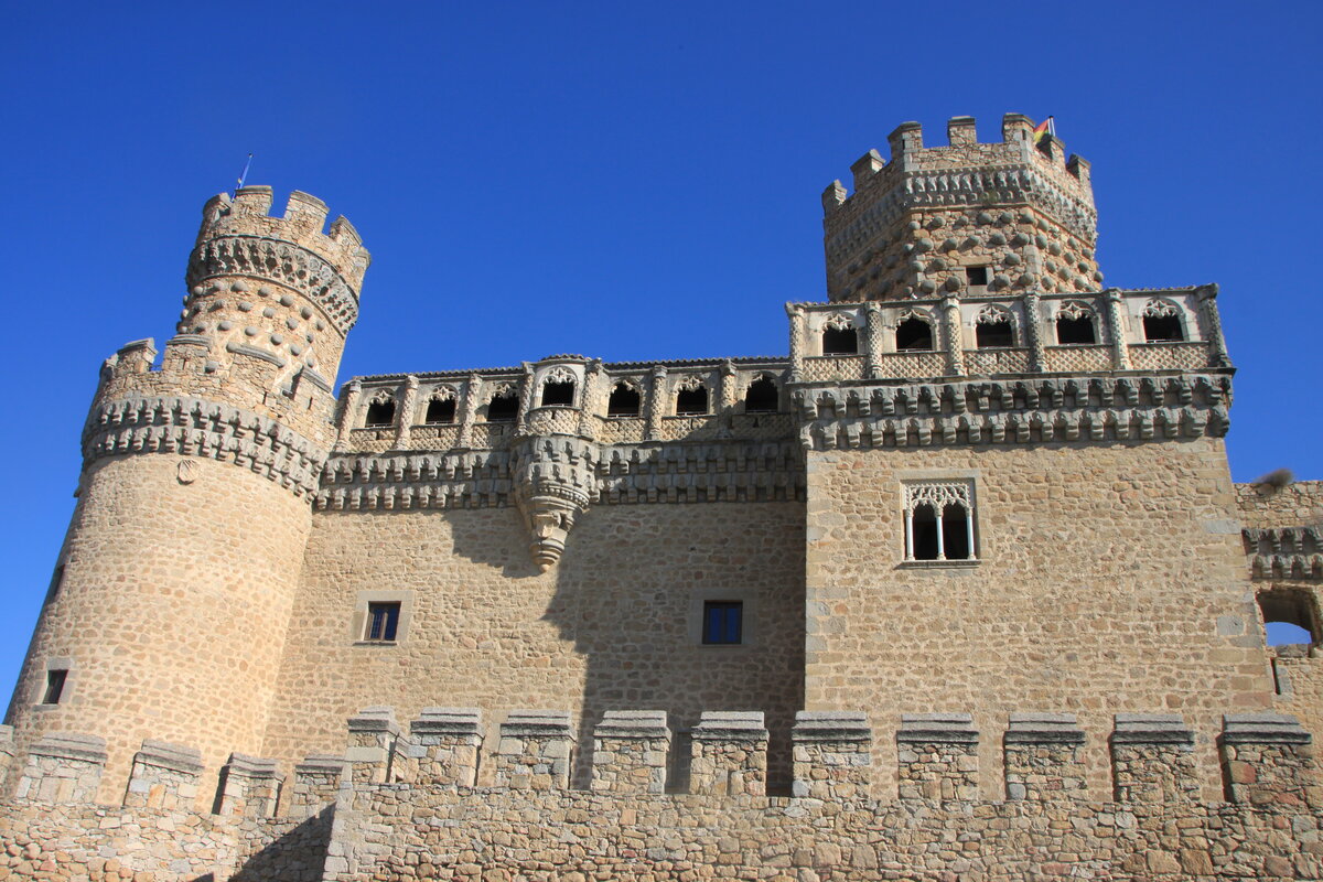 В пригороде Мадрида есть великолепный средневековый замок, почему-то его мало посещают российские туристы, а зря. Мои подписчики уже знают, что я большая любительница замков и готова ехать куда угодно, лишь бы пополнить свою коллекцию. Благо в этом случае ехать далеко не пришлось. В небольшом городке Мансанарес-эль-Реаль в пригороде Мадрида есть великолепно сохранившийся средневековый замок-крепость. До недавнего времени он был в частной собственности, но сейчас владельцы подарили его государству и теперь тут музей. Прелесть замка в том, что он находится в отличном состоянии, в нем сохранена часть обстановки и в целом посещение позволяет отчетливо представить, как жили испанские аристократы. Гуляя по стенам они любовались видами и наблюдали, как там живут подданные: городок со стен замка виден, как на ладони. При этом видимо аристократам жилось не очень спокойно, не напрасно ведь возведены такие крепостные стены, они способны выдержать серьезную осаду. Внутри замка есть ощущение