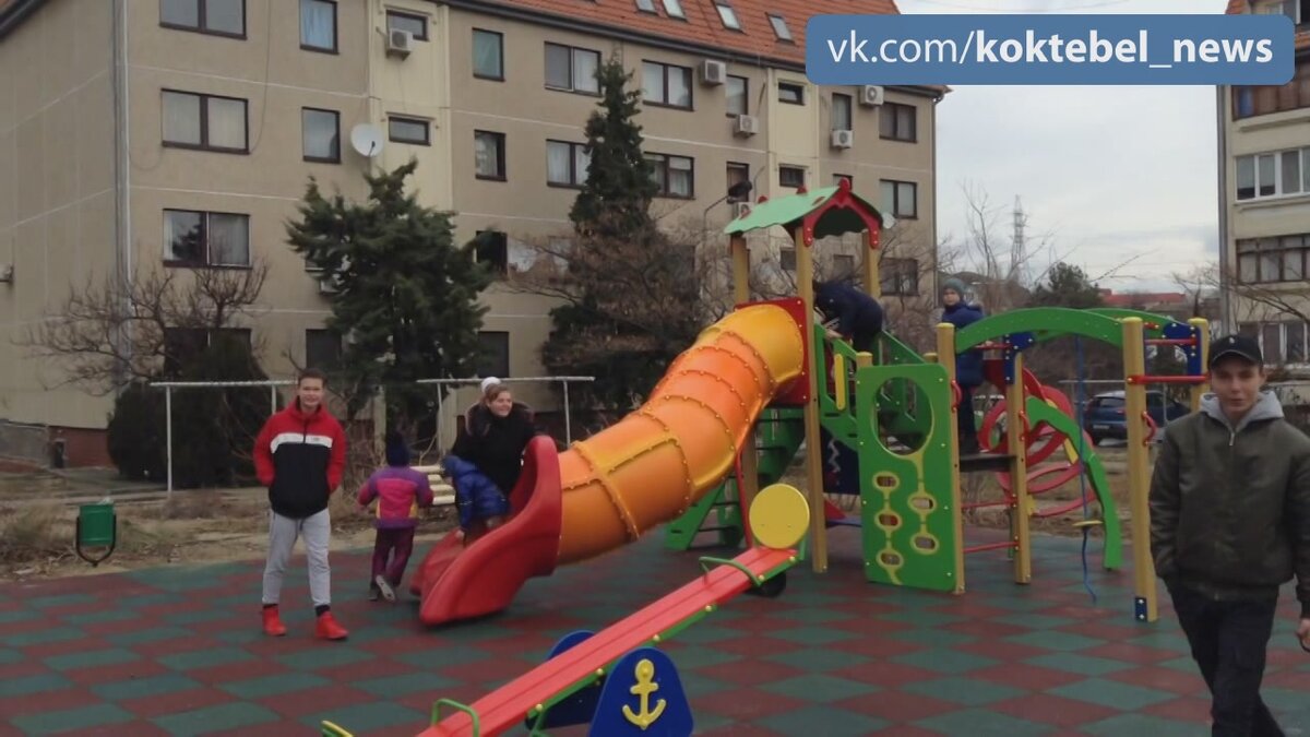 В пгт. Коктебель по переулку Долинный, в районе "немецких" домов, установили новую детскую площадку. Это комплекс полностью покрытый травмобезопастной резиновой плиткой. На площадке установлены: качеля-балансир, карусель, песочница, игровой комплекс, лавочки и урны.