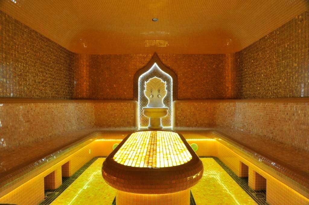 Обязательным и, если не самым главным, условием в турецкой бане является обустройство пола с подогревом и наличие у него уклона для хорошего стока воды. Также нужно позаботиться о гидрозатворе или о любом другом из вариантов оборудования, которое предотвратит попадание в баню неприятных запахов из канализации.