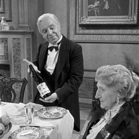 У немцев тоже есть фильм, который подобно нашей картине «Ирония судьбы, или С легким паром!» регулярно показывают по ТВ под новый год. Это короткометражка «Ужин на одного» (Dinner for One, 1963), которую в прошедшем декабре показали аж 14 раз на разных телеканалах Германии. Хотя бы однажды ее посмотрели в каждой немецкой семье. Как ни удивительно, но сюжет самого «новогоднего» в ФРГ фильма не имеет никакого отношения ни к Германии, ни к Новому году. В ленте всего два персонажа — английская аристократка мисс Софи, празднующая свой 90-й день рождения, и ее дворецкий Джеймс. Их сыграли британские комики Фредди Фринтон и Мэй Уорден. В честь дня рождения мисс Софи распоряжается накрыть на стол для четверых друзей, с которыми она всю жизнь отмечала этот праздник. Но загвоздка в том, что никто из них, в отличие от юбилярши, не дожил до столь преклонных лет, поэтому Джеймс по требованию хозяйки вынужден уже который день рождения подряд разыгрывать небольшой спектакль, поочередно имитируя п
