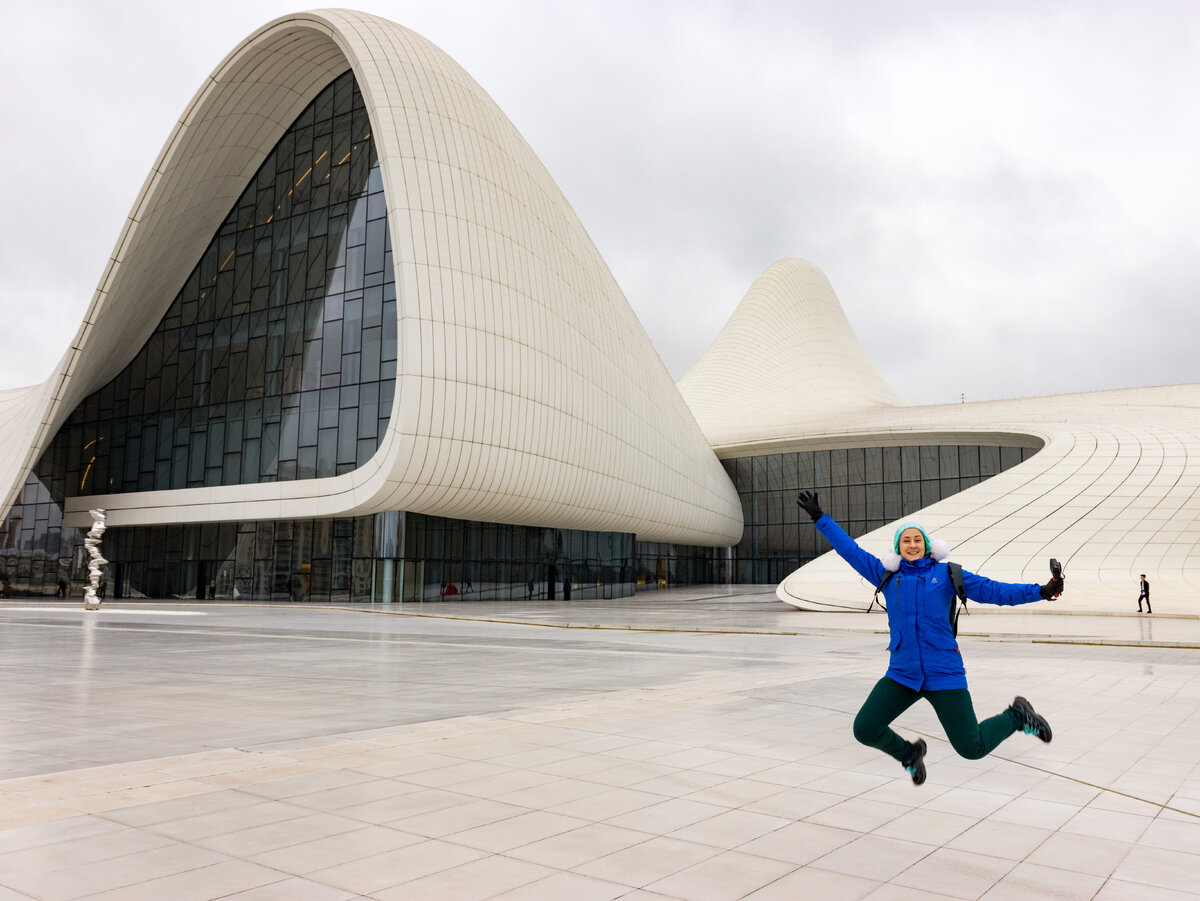 До Центра Гейдара Алиева мы добрались только на четвертый день пребывания в Баку. И если честно, пожалели, что не сделали это раньше. Мне кажется, что знакомство с культурой Азербайджана стоит начать именно с этого места, особенно если время пребывания у вас сильно ограничено… Но давайте по порядку. Здание центра выглядит очень необычно. Кто-то видит в ней космический корабль, кто-то развевающуюся юбку Мерлин Монро… Факт остается фактом, современная архитектура этого здания не оставит Вас равнодушным. У центра нет ни одного угла – только плавные линии и волны. Архитектор проекта Заха Халид – одна из самых неординарных и высокооплачиваемых архитекторов начала 21 века. Здание центра собирали как мозаику из 12 тысяч белоснежных блоков. Говорят, что ни один из них не был похож на другой… Помимо самого центра, который стоит на холме, стоит погулять по территории вокруг. Внизу можно увидеть красивые зеленые лужайки, искусственные пруды и плавные водопады. Тут же расположен арт-объект I love