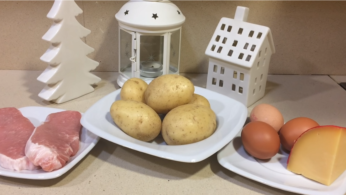 Здравствуйте! Сегодня поговорим о рецепте "Медвежья лапа" со свининой. Это безумно вкусное блюдо и сейчас я научу вас его готовить. Кто ещё не подписался на канал Подпишитесь и начинаем! Для приготовления нам потребуется: Свинина 350 гр. Яйцо куриное 3 шт. Картофель 500 гр. Сыр (твёрдый) 100–150 гр. Чеснок 3–5 зубчика Соль по вкусу Приправы для мяса по вкусу Масло растительное для жарки по вкусу Приступим? Как всегда буду объяснять простыми словами. На крупной тёрке натираем картофель. Отжимаем от лишнего крахмала. выкладываем на тарелку и заливаем водой чтобы промыть лишний крахмал. Оставляем в воде на 5-10 минут. А пока займемся мясом. Отбиваем кусочки мяса с двух сторон. Солим, перчим так же с обоих сторон. Отжимаем наш картофель, добавляем 2 яйца, соль, перец, 2-3 ложки муки и перемешиваем. В третьем яйце которое у нас осталось обваливаем кусочки мяса. Включаем сковородку. И одновременно духовку на 180 градусов пускай она у нас разогревается. На раскаленную сковор