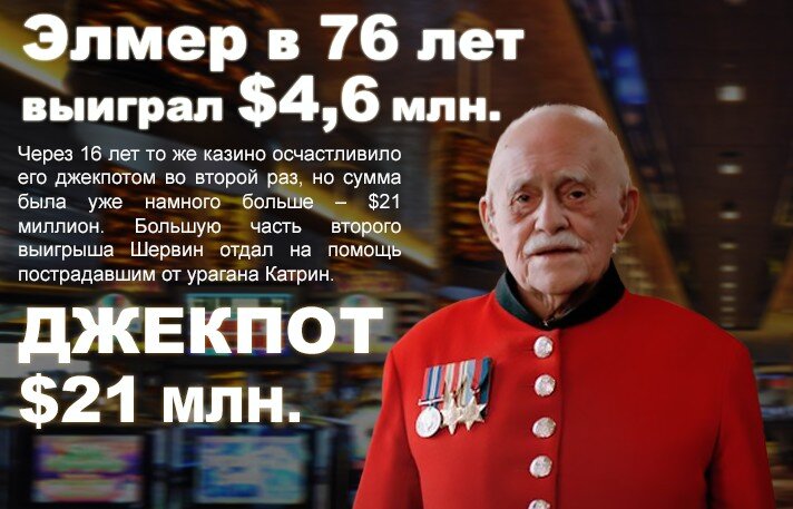 Ветерану Второй мировой войны Элмеру Шервину было 76 лет, когда он взял джекпот размером $4,6 млн.