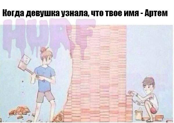 Пришло время когда Артёмов весь мир возненавидел, но как весь мир а только в России, ну не совсем в России а только в интернете, как всегда хайповые паблики подцепили идею что некоторые пользователи сети очень редко или вообще не встречали людей с отчеством Артёмович. Но почему же пошла такая ненависть админов пабликов не только к отчеству а самому имени #артём, что же подвигло их сразу пилить столько злостных а иногда даже обидных мемов про это имя, да потому что в комментариях Артёмы постоянно надрывают пуканы и их начинают троллить другие подписчики сообщества, а как мы знаем что публикаторы очень любят издеваться над людьми и начинают опять и опять обсирать народ - придумывая очередную жестокую картинку про Артёма. Я предлагаю так же как и Санькам когда то взять и отдать одолженную сотку, прекратить бомбить в комменты очередного похабного мема про Артёма, и вскорем времени этим любителем стёба наскучит троллить ваше имя и тогда мем канет в лету и пополнить очередной список старых