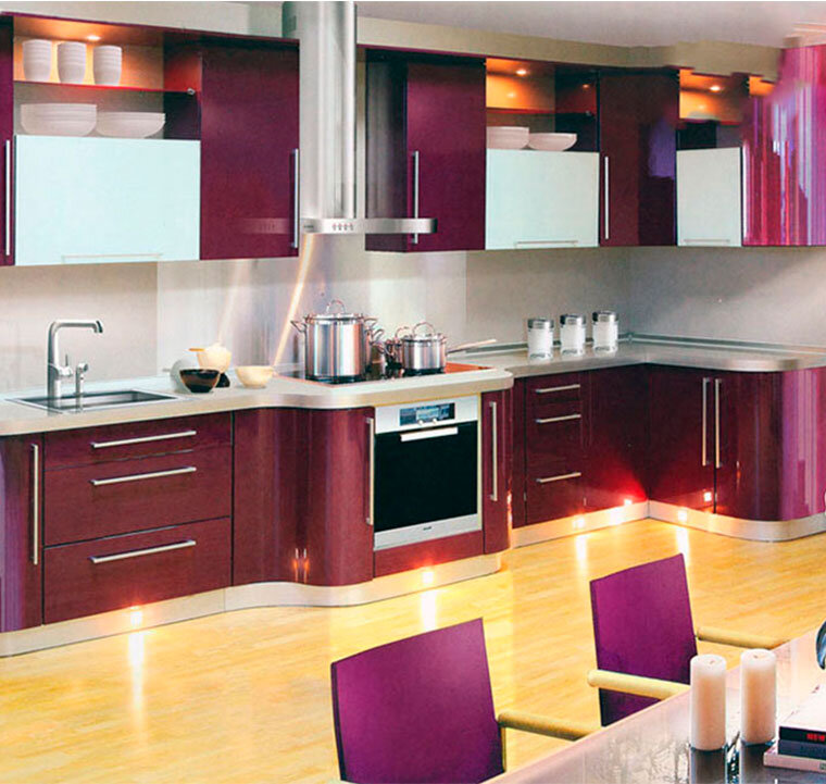 Кухонные гарнитуры с эмалированными МДФ фасадами стоят дорого, но по своим характеристикам превосходят многие другие варианты внешней отделки, а с точки зрения внешнего вида - им вообще нет равных.