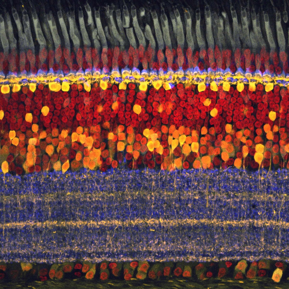 Давно мы не публиковали снимков сетчатки. А если публиковали, то сетчатку либо мыши, либо человека. И вот вам снимок, который представляет собой вертикальное сечение сетчатки куриного глаза. В 2008 году этот конфокальный снимок, который сделан с увеличением в 400 крат, получилпочетное упоминание жюри на конкурсе Nikon Small World. Credit: Dr. Andy Fischer, The Ohio State University, Columbus, Ohio, USA