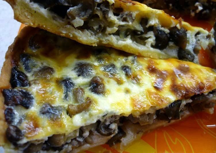 Грибы - полезный продукт, который необходимо включать в свой рацион. Они содержат сбалансированный комплекс элементов, необходимый нашему организму. А еще они являются низкокалорийным продуктом. Конечно, и злоупотреблять не стоит. А я просто люблю грибы, поэтому предлагаю вам испечь грибной пирог, чтобы побаловать себя и свою семью. Ингредиенты: 200 г муки 50 г сливочного масла 1 яйцо 3 ст.л. холодной воды 0,5 ч.л. соли 1 банка маринованных шампиньонов (можно заменить другими грибами) 1 луковица 100 г сыра зелень Готовим: 1) яйцо взбить, добавить размягченное сливочное масло, перемешать 2) добавить воду, соль, муку. Замесить тесто. 3) лук и грибы нарезать, обжарить до полного выпаривания влаги, посолить, остудить. 4) сыр натереть на терке, зелень измельчить. 5) форму для выпекания смазать маслом, тесто раскатать, положить в форму, сформировать бортики 6) выложить начинку, посыпать зеленью и тертым сыром 7) выпекать при температуре 220 градусов 20 - 25 минут.