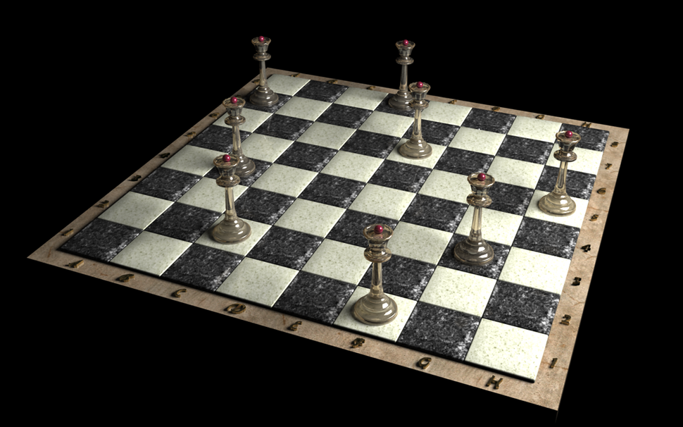 Задачу о восьми ферзях на шахматной доске пробовали решить, вероятно, все, кто знает, как ходит ферзь. Эта довольно сложная математическая и игровая головоломка была изучена и описана знаменитыми математиками в середине 19 века. Найдены были 92 решения задачи и доказано, что других вариантов быть не может. Напомню условия задачи: на шахматной доске необходимо расставить 8 ферзей таким образом, чтобы они не смогли убить друг друга. Мне довелось изучать азы шахматной игры в Доме пионеров, и мой первый тренер ставил перед новичками такую задачу уже на первых занятиях, едва показав правила передвижения фигур. Естественно, с первой попытки никто задачу не решал. Как, впрочем, и со второй, пятой или двадцатой. Тренер решения не давал сравнительно долго, и месяц-два мы на занятиях занимались его поиском. Те, кто находил ответ в шахматных книгах, пытались выдать решение за самостоятельное, - тогда преподаватель предлагал найти ещё как минимум три-четыре варианта ответа. Мы, не задумываясь, вн