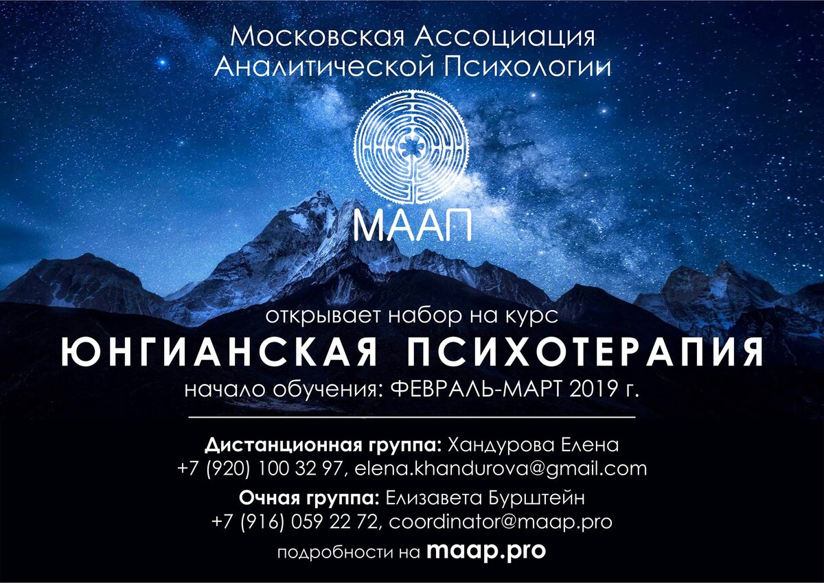Московская ассоциация аналитической психологии открывает новый набор на очный и дистанционный курс базовой программы "Юнгианская психотерапия".