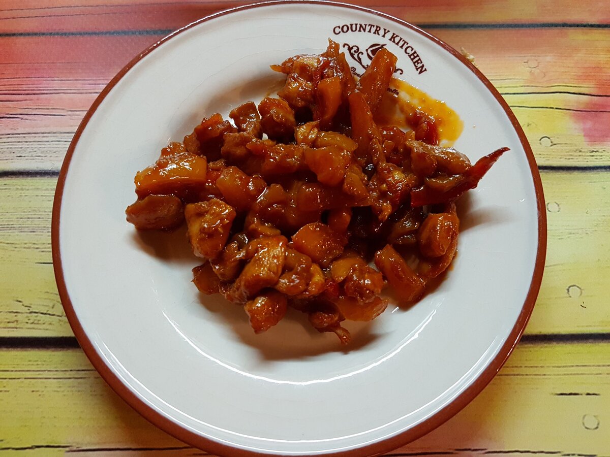 Кто любит китайскую кухню? Мы любим! Особенно, когда она немного адаптирована для наших русских животов. В этом рецепте - доступные продукты превращаются в аппетитное блюдо с китайским колоритом. Количество ингредиентов регулируйте по вкусу. На 500-600 куриного филе возьмите: - соевый соус 6-8 столовых ложек - рисовый или яблочный уксус - 6 ст.л. - сахар тростниковый - 5-6 ч.л. - томатная паста - 2 ст.л. - перец болгарский - 2 небольших или 1 большой - консервированный ананас кусочками - 1 стакан 1. Куриное филе нарезать на небольшие кусочки, сложить в миску, влить соевый соус. 2. Добавить томатную пасту, сахар и яблочный уксус. 3. Всыпать нарезанный на тонкие полоски красный болгарский перец и ананасы кусочками. Перемешать и оставить для маринования на полчаса-час. 4. Накалить сковороду и на сильном огне обжарить курицу вместе с соусом в течение 10–15 минут. Все подробно можно посмотреть вот на этом видео: Не стесняемся ставить лайк, если вам понравилось!