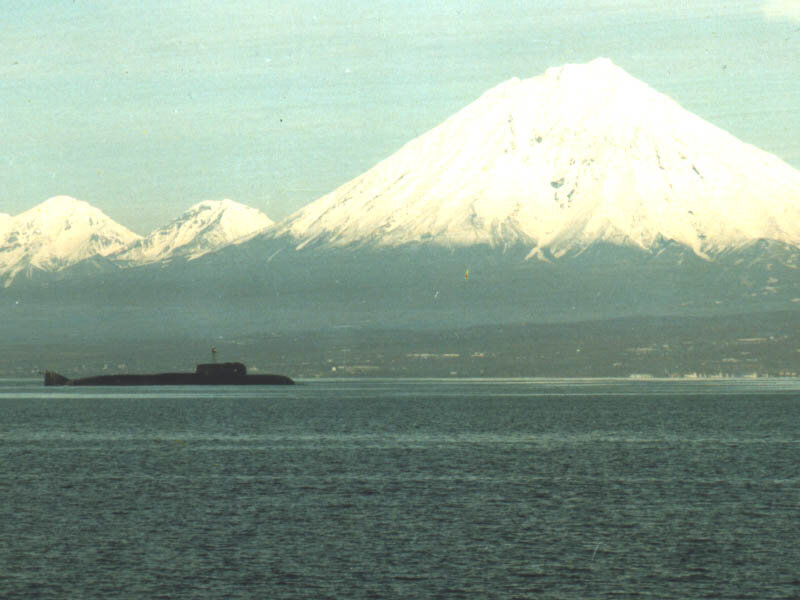 "Батон" , т.е. АПЛ пр.949А на Дальнем Востоке. Красивое фото с вулканом в виде фона и опять совершенно не указан автор этой фотографии. В прошлом фотографы ... принимались в академики по классу фотографии Академии Художеств и это указывает на разницу между "примитивно фоткнуть" и истинно художественным фото!