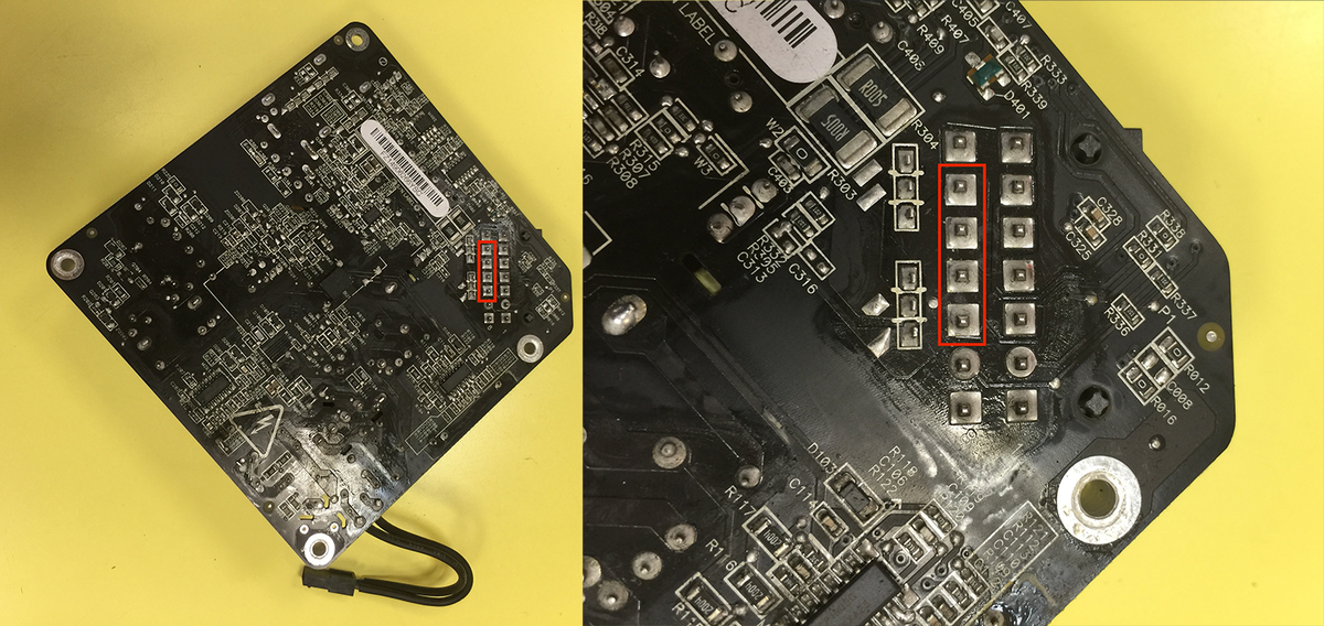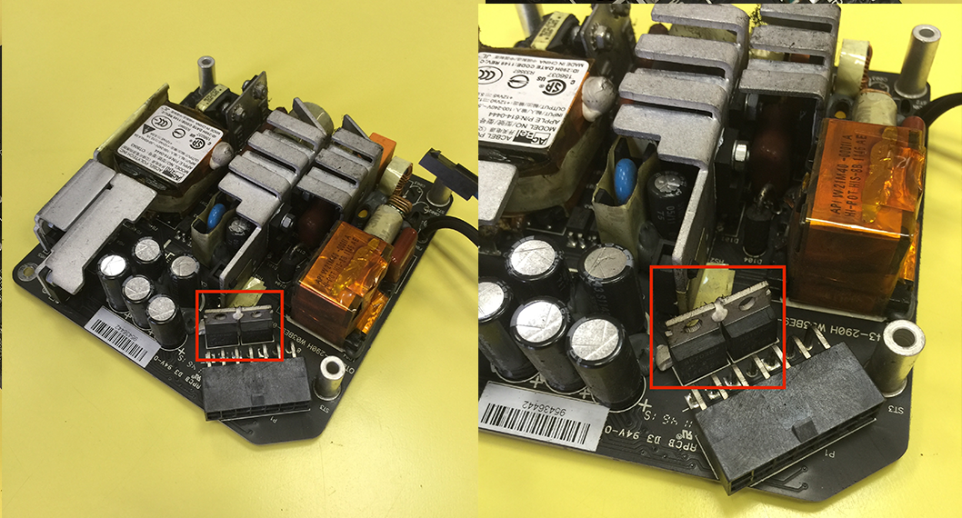 Эта статья посвящена распространенной проблеме c подсветкой матрицы на iMac 21,5” 2009-2011 модельных годов. Симптомы: При таких симптомах проблема с большой долей вероятности в блоке питания iMac. Если замерить тестером напряжение на выходе из блока питания на соответствующих контактах (см. Фото 1), то оно будет просажено ниже 12 В (нестабильно и скачет обычно в интервале от 10 до 11 В). В нормальном состоянии это напряжение стабильно (не скачет) и составляет 12 В (+- 0,2 В). Решение проблемы заключается в замене двух полевых транзисторов на блоке питания iMac (обведены на Фото 2). PS. Причина возникновения неисправности. В подавляющем большинстве случаев эта неисправность возникает в iMac 21,5” 2011 модельного года в результате неправильной сборки (например, после установки дополнительного SSD) после извлечения и установки обратно материнской платы. Дело в том, что в этой модели iMac на материнской плате имеется 2 одинаковых разъема: разъем питания жесткого диска и разъем управления