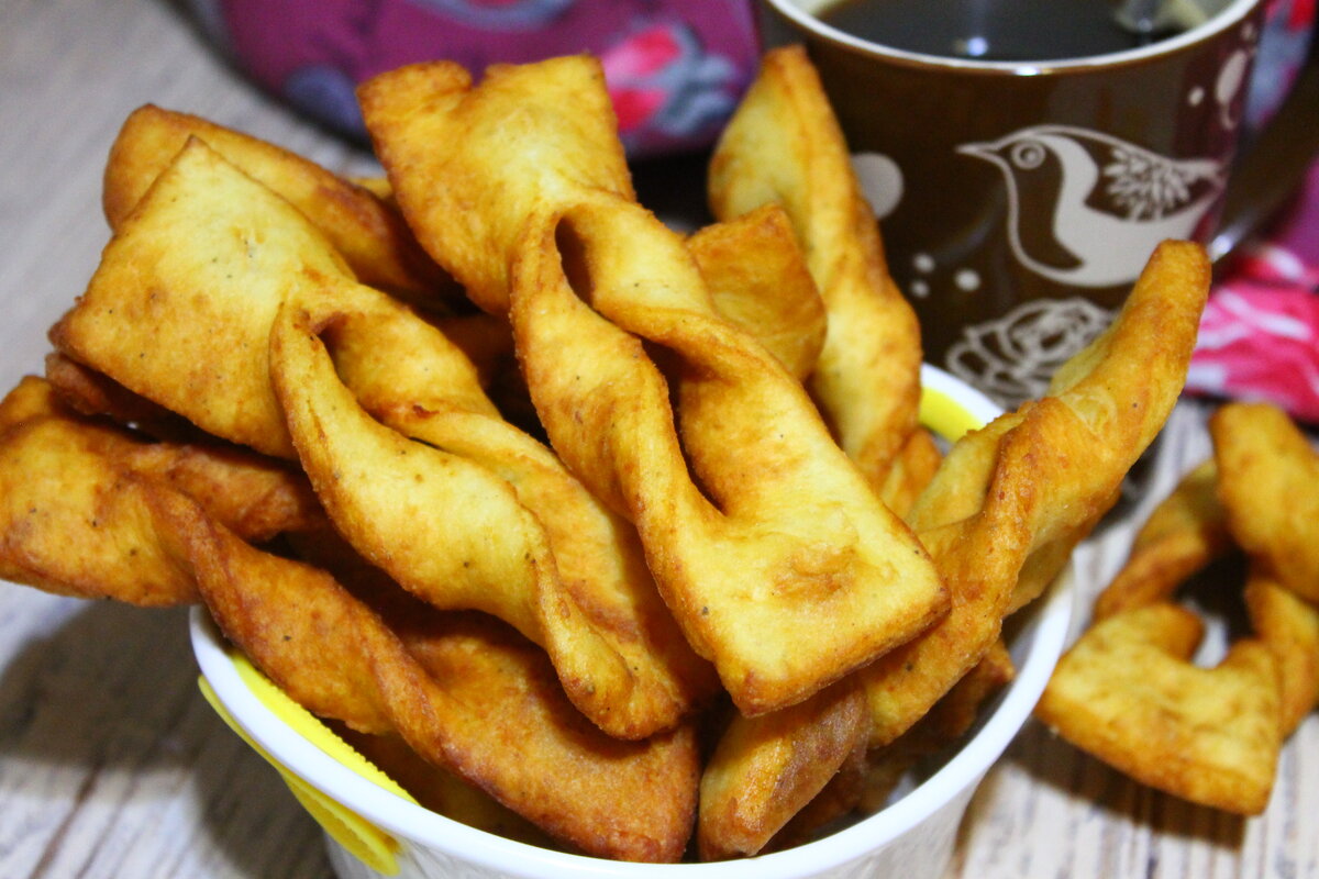 Сегодня с утра готовила картофельный салат, для приготовления которого, картофель варила в мундире. Две картофелины ушли на приготовление салата, три картофелины остались... Именно они "пошли" на хворост! Хотя, это может быть не только отварной в мундире картофель, можно взять просто вареную картошку без кожуры... А ещё лучше взять "вчерашнее, недоеденное" картофельное пюре! Для приготовления хвороста я взяла: 3 средние картофелины, сваренные в мундире Одно куриное яйцо Соль, черный молотый перец... И, приблизительно 200 г муки (+-) 1 ст. л. Приготовление: Если у вас готовое картофельное пюре (у меня обычно всегда остаётся после ужина или обеда, и причём немало) — это круто! Уже сокращается время приготовления... А так, вареный картофель нужно растереть толкушкой. Однако, остывший картофель достаточно тяжело растереть (в любом случае будут оставаться крупинки), но, тогда его просто нужно натереть на мелкой терке... Получится идеальная консистенция! Теперь нужно добавить яйцо, только пр