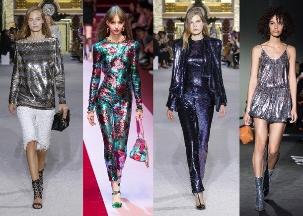 Начнем с самого гламурного и сверкающего тренда 2019 года. Пайетки и блестящие ткани сделают этот год звездным и зажигательным. Весной выбирайте длинные и объемные свитера из блестящих ниток; свитер должен быть однотонным или с переходом цвета от яркого к нейтральному. Летом вашим верным спутником станет сверкающий комбинезон с короткими шортиками. Дополнить образ можно бомбером из атласа или шелка с матовым блеском. Чтобы стать самой заметной на вечеринке, выбирайте облегающий фигуру комбинезон, расшитый серебристыми или черными пайетками. В 2019 году в тренде асимметрия, так что, примерьте комбинезоны на одно плечо. Если вам предстоит серьезное мероприятие, выбирайте закрытый блестящий комбинезон, дополненный свободным жакетом.