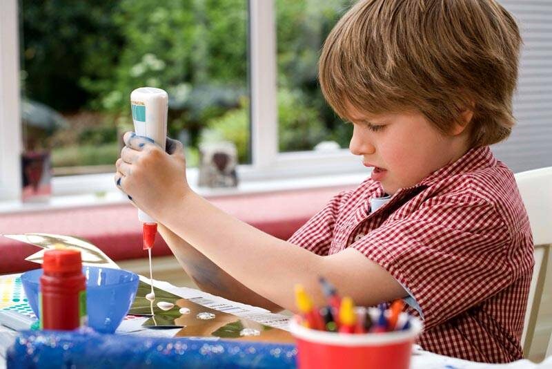 Старший «воспитывал» младшего (младшему три года). Старший клеил аппликацию, и маленькому, естественно, тоже хотелось поучаствовать.