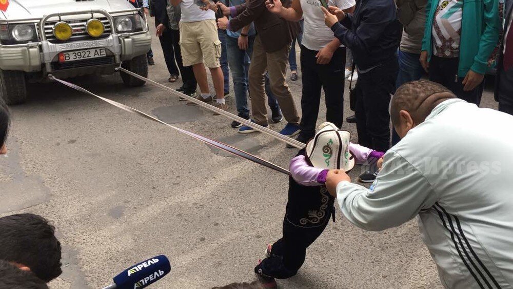 В столице Киргизии Бишкеке пятилетний мальчик протащил внедорожник весом в три тонны на расстояние 34 метра. Кадры подвига опубликованы в Сети. Таким образом, юный богатырь установил новый рекорд по перемещению тяжестей. Мальчик выступал под псевдонимом Нуркыргыз, что переводится с киргизского как «киргизский луч», и в маске. На этом настояли родители, не желающие афишировать имя своего сына. Как рассказал наставник Нуркыргыза, известный в Киргизии силач Нурлан Алишеров, ребенка готовили к выходу полгода. Сейчас его тренируют для выступления в Соединенных Штатах. «Мой друг из США заинтересовался его номерами. Говорит, они будут пользоваться успехом в 50 штатах Америки!» — рассказал Алишеров.