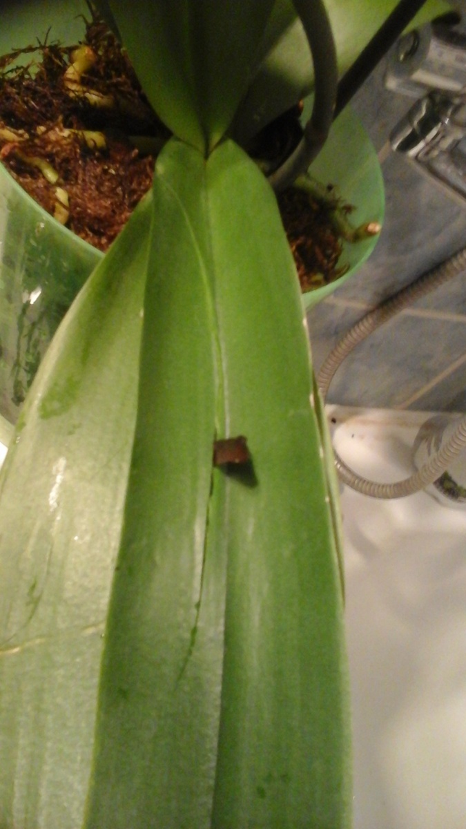 Но стала видна новая почка в месте отрастания нижнего листа. Я пока не могу понять это новый корешок растет или это цветонос.