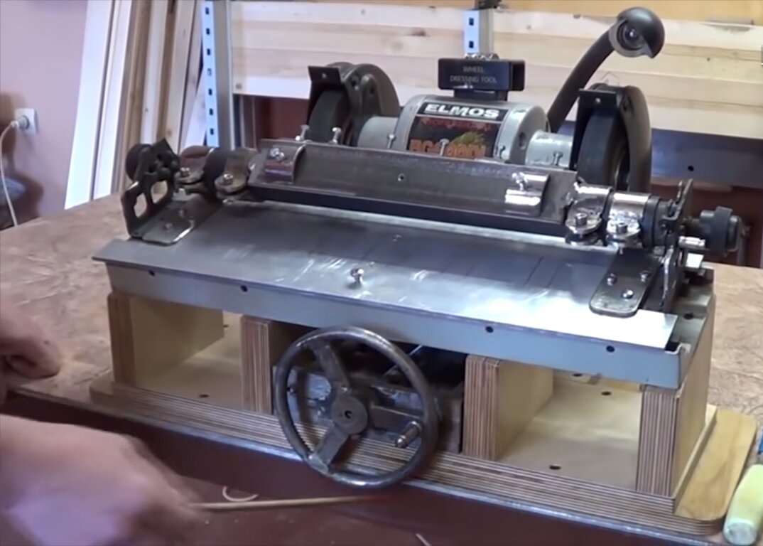 Здравствуйте, дорогие читатели нашего канала про загородную жизнь! Сегодня мы рассмотрим несколько интересных полезностей для дома, дачи и гаража. У режущего инструмента есть одно очень гадкое свойства, он со временем становится тупым. Нам прислали довольно интересный метод. Очень неплохая доработка заточного станка, которая поможет содержать ваши инструменты в подобающем состоянии. Точилу установили на подставку из фанеры. При помощи винтовой подачи его можно перемещать вперед-назад, также в дело пошла каретка от пишущей машинки. Инструмент фиксируется на коретке при помощи держателя из пластины и обрезков трубы. Дальше дело техники. На наш взгляд очень классная идея. Спешим поделится следующей полезной находкой - тумба для рейсмуса. Она имеет нишу с полками и два выноса. На них удобно расположить струганные детали и те, которым только предстоит обработка. Кроме того, предусмотрен вот такой поддерживающий столик для длинных заготовок. Ноги его телескопические, благодаря чему