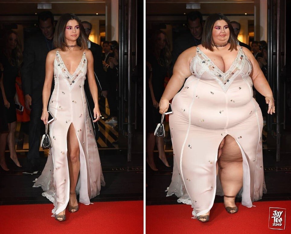 Jay Teе — художник, выступающий в защиту тех, кто не подходит под стандарты красоты, которые нам внушают с экранов. Для того, чтобы показать, что у красоты нет размеров, он создал серию работ, в которой добавил «лишние» килограммы звездам. Крутите вниз и вы увидите, как бы выглядели знаменитости в размере plus-size. Селена Гомес Леди Гага Рэйчел МакАдамс Рита Хейворт Хиллари Клинтон Кристина Хендрикс Ферджи Дженнифер Лопес Джессика Симпсон Эмма Стоун Меган Фокс Мириам Леоне Кейт Миддлтон Дженнифер Гарнер Шарлотта МакКинни