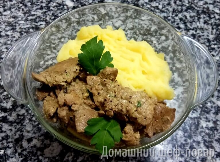 Блюдо очень универсальное, так как отлично подойдёт к любому гарниру будь то рис, гречка, пюре, макароны и прочие. Я взял пюре, кстати его рецепт есть здесь: Рецепт №2 "Пюре"