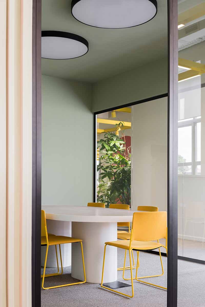 «Детский Мир» — название, знакомое каждому с детства. Первый магазин под этим брендом появился в Москве в 1947 году, и вскоре «Детский мир» превратился в общенациональную сеть. Сегодня в состав компании входит больше 700 магазинов в России и Казахстане. После недавнего обновления бизнес-стратегии бренду понадобилось новое рабочее пространство, в котором разные отделы могли бы свободно взаимодействовать, а команда в целом — расти. Головной офис переехал в здание бывшей типографии, построенное в 1978 году из силикатного кирпича, и занял четыре этажа. Архитектурное бюро FORM разработало и реализовало проект штаб-квартиры, отражающей главные ценности компании: погружение в мир детства, открытость и доступность для всех. В детстве окружающие предметы кажутся больше, чем есть на самом деле, и воспринимаются не как функциональные объекты, но как пространство для воображения и игры. Используя это ощущение, архитекторы решили работать с офисом как с настольной игрой, и это оказалось удачной