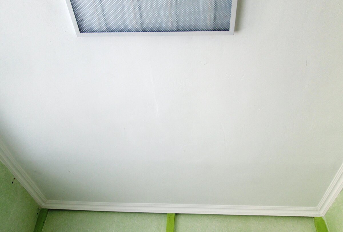 Внизу тематическое видео с этого объекта. Приветствую постоянных и новых читателей на канале! Хорошо, что зашли, так как обнаружил свежий нестандартный ход в отделке. На этот раз потолочный шедевр в исполнении неизвестных авторов. Менял на потолке старый светильник на новенький растровый, о котором писал недавно. Полок по виду гипсокартонный, других версий не было. Постучал по нему - звенит, значит гипсокартон, поэтому думал с укладкой проводки проблем не будет. Только оторвал светильник от потолка, посмотрел на торцы отделочного слоя и остолбенел - гипсокартоном и не пахнет, а планам моим конец. И что же там? Смотрите сами. Пенопласт 3 см, приклеенный к потолку по всей площади то ли на шпаклевку, то ли на гипс. И сверху зашпаклеванный тонким слоем, примерно 0,5 см. Оголившийся проем сухой и чистый: сырости и плесени нет! А ведь это верхний этаж здания, потолок которого всегда сильно промерзает. Вот что еще обнаружено: - поверхность потолка под пенопластом, как показалось, не обрабо