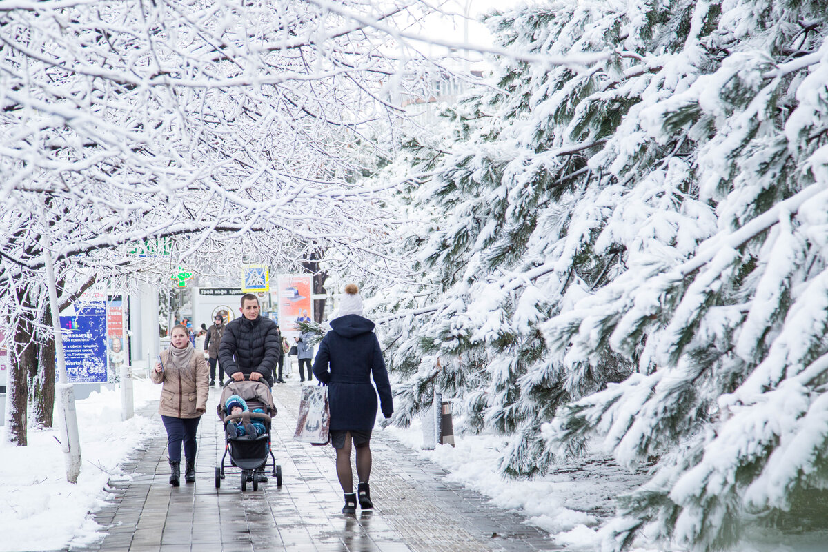 Один день из зимней жизни Анапы! ❄️Сегодня погода порадовала анапчан и гостей курорта снегом. ☃️Правда, белыми улицы будут недолго, по прогнозам синоптиков в ближайшие дни ожидается плюсовая температура.🏂