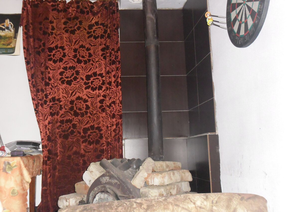Печка отработала первую зиму почти без нареканий. Труба сгорела только. Трубу я купил обычную, из "черной" жести. После того, как она прогорела, буквально через пару месяцев после начала эксплуатации, я её заменил на нержавейку. К середине зимы стало ясно, что неутепленный толком дом очень не любит "держать" тепло. Пришлось среди зимы изыскивать резервы в виде пенопласта и утепляться. Потом выяснилось, что "Булерьян" так же быстро остывает, как и нагревает помещение. Отсутствие шибера на трубе делало эту самую трубу хорошей вытяжкой для только что созданного после топки тепла. Шибер я поставил, потом обложил саму печку кирпичом "на сухую", без раствора и в комнате стало заметно теплее.