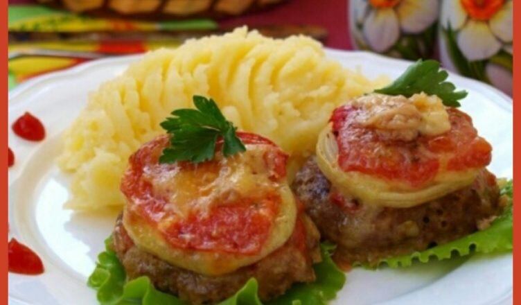 Мой любимый рецепт котлеток! Очень сочные, нежные получаются, ну просто вкуснотища! Это будет отличный вариант и на праздник, и на ужин с семьей. Очень рекомендую попробовать! Приготовление: 500гр мясного фарша смешиваем с 1 яйцом, 1 измельченной луковицей, 2-3 ломтиками белого хлеба, который предварительно вымачиваем минут 10 в молоке. Кладём на свой вкус соль и перец. Из полученного фарша формируем мокрыми руками котлетки и выкладываем на противень. Удобнее всего противень застрелить пекарской бумагой, смазать маслом и выкладывать котлетки. Теперь на каждую котлету кладем репчатый лук порезанный кольцами, на него выкладываем немного шампиньонов, нарезанных пластинами. Кладём буквально 3 кусочка грибов, не больше. Можно свежие грибы использовать, а можно предварительно обжарить их немного на сливочном масле. Грибы сверху смазываем чуть-чуть сметаной или майонезом. На грибы кладем кружок свежего помидора, сверху щепотку соли и черного перца. Можно немного измельченного чеснока положит