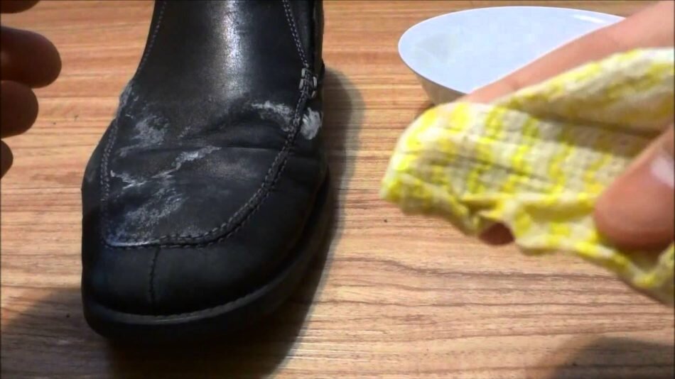 уксус. В России очень долго длится зима, дорожники любят посыпать дороги огромным количеством реагентов и соли. Всё это очень влияет на нашу с вами обувь и не только. Это очень плохо обувь вся в налёте! Вот самый быстрый, самый эффективный способ очистить солевые пятна. Опустите чистую, сухую тряпочку в уксус. Затем приложите ткань на солевых пятнах и наблюдайте как быстро что они исчезают. Дайте обуви высохнуть и, если есть все еще след соли повторите процедуру ещё раз. Далее опустите тряпочку в теплую воду и протрите обуви от остатков уксуса и соли.