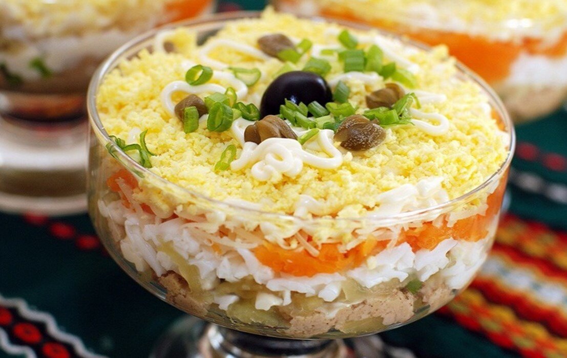 Салаты прошли долгий путь с пешеходной версии салата, помидора и огурца. Сегодня нет конца сотням сортов, ингредиентов и перевязочных материалов, доступных для нашего обезумевшего народа. В 1920-х годах они попали в большое время, так как шеф-повара ресторана создали Цезарь, Шеф-повар, Кобб и фруктовые салаты. Консервированные овощи и фрукты стали более доступными и были брошены в смесь, позволяя американцам есть салаты круглый год. Просто уксус и масло сделали комнату для разлитых по бутылкам шлихт и mayo, вымощая дорогу для "прыгнутых салатов."Звучит немного странно, но эта категория включает в себя некоторые из наших фаворитов: салат из тунца, салат из курицы, салат из яиц, салат из ветчины, салат из креветок и краба. Курица пришла первой, появившись в середине 1800-х годов поваренных книг, тунец намного позже с появлением консервированного тунца. В конце 1930-х годов спам сделал салат из ветчины легким, а салат из яиц был естественным. С введением желатина желе, отлитые в форму салаты приняли их цветастое место на любой обед.