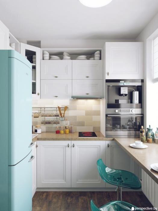 Вероятно, у многих из нас есть узкая и длинная или небольшого размера кухня . Хотя столовую зону за частую совмещают с гостиной, все же некоторые люди не хотят отказываться от кухни, как от закрытого помещения. Если, проанализировав все плюсы и минусы, мы решим выбрать закрытую кухню или просто у нас нет другого выбора - мы столкнемся с проблемой обустройства небольшого помещения, которое должно быть максимально функциональным. Есть несколько простых уловок, благодаря которым проектирование маленькой кухни станет легким и приятным. Правила успешной кухни Первое правило успеха кухни должен быть цвет, подойдут светлые, яркие и свежие тона. Второе правило избыток «маленьких кусочков» испортит нам внешний вид , а их отсутствие создаст пустоту и чистоту и увеличит пространство. Обратите свое внимание на технику 2 в 1, выбирая духовку вы можете купить с микроволновой печью, а вместо цитрусового пресса или блендера купить комбайн. Остров Интересным решением может стать мобильный