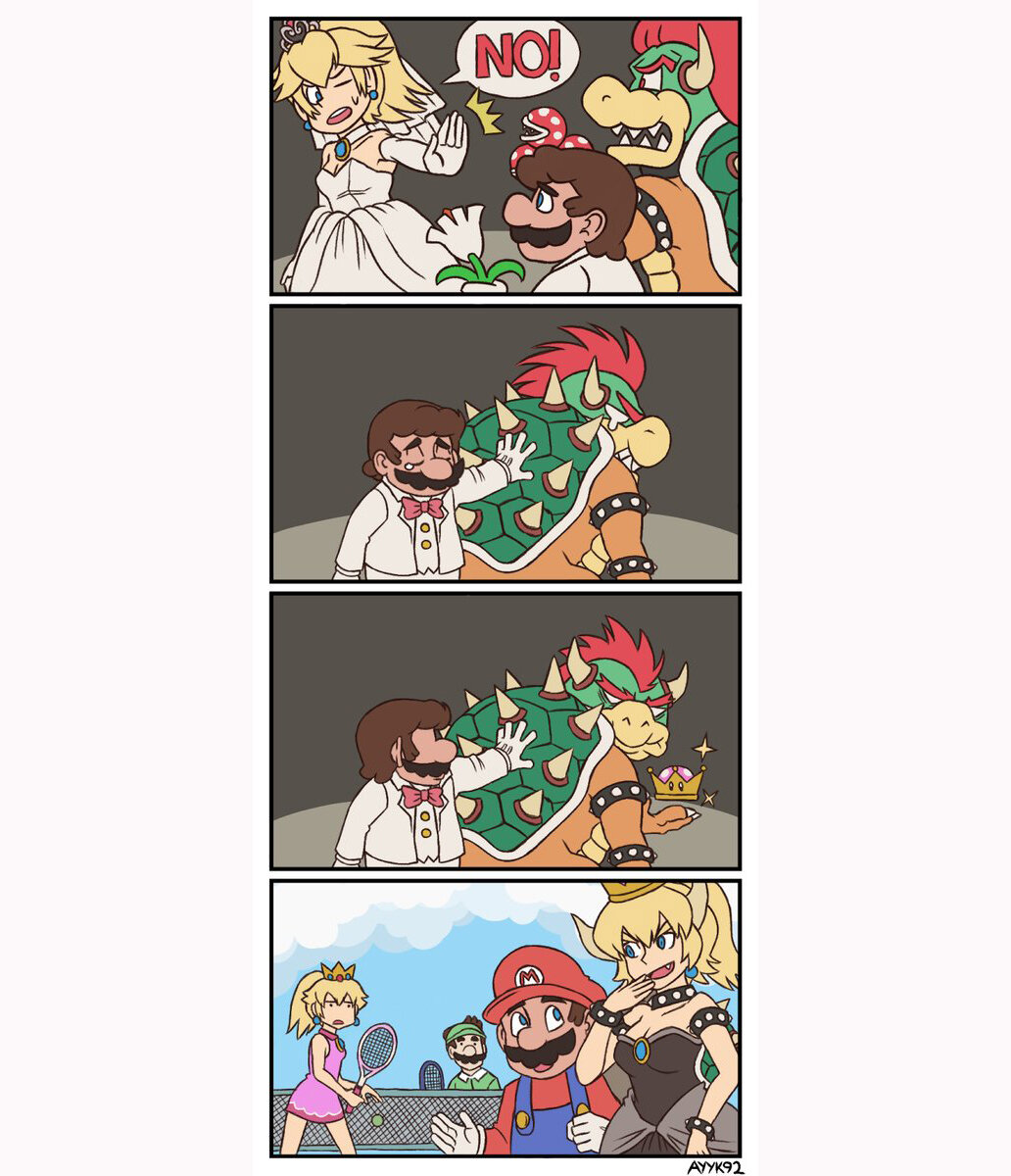 К сожалению компания Nintendo не признала Боузетту частью вселенной Марио. Один из пользователей наткнулся на описание супекороны в которой говорится что корону может носить исключительно Тоадетта. Кто такая Боузетта? В прошлом году в сентябре Nintendo показала волшебную корону для Тоадетты. С помощью неё она превращается в напоминающую принцессу Пичетту. Фанаты Марио начали фантазировать как бы выглядели принцесоподобные версии всех персонажей. Автором идеи Боузетты является пользователь aykk92. Он выложил короткий комикс в своих социальных сетях. В комиксе показано как Боузер главный злодей серии игр про Марио, одев корону превратился в Боузетту. Фанаты так полюбили Боузетту что наделали кучу фан артов и косплеев. Кстати один популярный сайт для взрослых назвал Боузетту самым популярным запросом в 2018 году. Ну а мы предлагаем вам подборку 10 артов и косплеев с главной фанатской героиней 2018 году