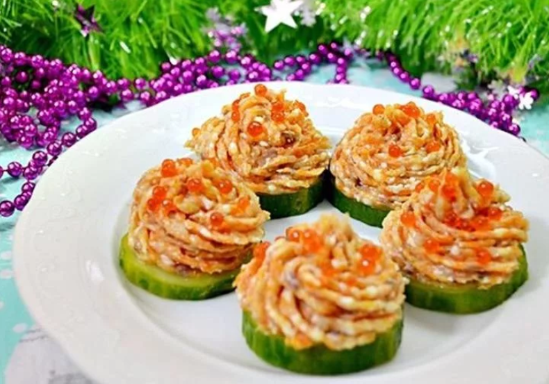Необычная но очень вкусная закуска, на которую я наткнулся так же, как и вы сейчас, она мне приглянулась с первого взгляда и теперь официально вошла в ряды тех, что мы готовим постоянно. Чистить рыбу думаю не стоит объяснять как, все хоть раз это делали, главное убедитесь, что все кости достали! Морковку отвариваем в подсоленной воде. Теперь замешиваем в одной миске порезанную сельдь с морковью и сыром с маслом. Перемешав пропускаем всё через мясорубку. Получается очень вкусная намазка для бутерброда. Однако можно делать и как закуску на огурец и т.д. Вариаций много, украшаем зеленью и подаем к столу. Со стороны и правду выглядит, как бутерброды с икрой, но вы не разочаруетесь, если попробуете.