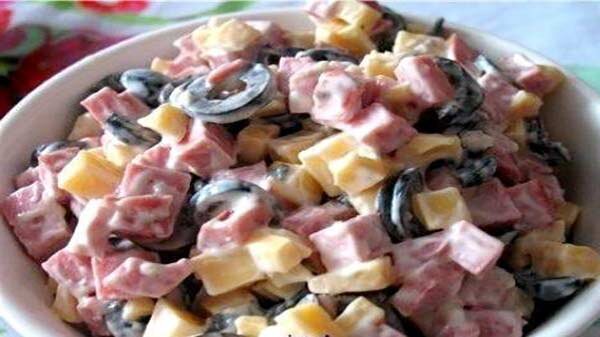 Кстати, установлено, что если вы употребляете маслины регулярно, то тем самым Вы очищаете организм от радиоактивных элементов. И это ещё не все полезности маслин... Итак, предлагаю прочитать и взять на заметку эти простые рецепты салатов с присутствием этого полезного ингредиента. Салат с ветчиной и маслинами Необходимые ингредиенты: · Одна банка консервированных маслин; · 300 гр. ветчины; · Пара долек чеснока; · 300 гр. твердого сыра; · Майонез на свой вкус. Способ приготовления блюда: 1. Итак, для начала нарежем небольшими кусочками ветчину. 2. Затем вскрываем банку с маслинами, сливаем жидкость, а маслины нарезаем тонкими кольцами. 3. После этого нарезаем сыр небольшими кубиками. 4. Далее чистим чеснок и давим его в пресс. 5. А теперь все наши нарезанные ингредиенты перекладываем в салатник и перемешиваем. 6. В общем-то, это и всё, заправляем салат майонезов, ещё раз хорошо перемешиваем и подаем к столу! Салат маслины сыр огурец Для этого салатика вам потребуются следующие ингредиен