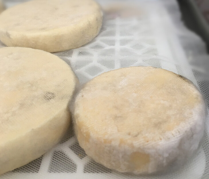 Мукор (лат. Mucor) - это род низших плесневых грибов, включающий более 50 видов. Мицелий выглядит как светло-серые шерстинки с черными головками-спорами, поэтому мукор называют также "кошачьей шерстью". Мнения о съедобности сыров, зараженных мукором, разнятся, но очевидно одно - товарный вид сыра неизбежно теряется. Согласитесь, мало кому понравится сыр в черных пятнах. В большинстве случаев к появлению мукора ведет простейшая ошибка: вымыли руки, вытерли их полотенцем и принялись за обслуживание сыров. А полотенце, которое остается влажным после вытирания рук, это отличное место для развития всяческой, совершенно не нужной сыроделу, микрофлоры. И получается, хотели как лучше, а получилось с точностью до наоборот. Нельзя сказать, что полотенце - единственная причина появления мукора на сырах, но очень часто дело именно в нем. Поэтому приучите себя сушить руки после мытья на воздухе, либо вытирайте их одноразовым полотенцем. И - да, эта привычка хороша при работе со всеми сырами, а не