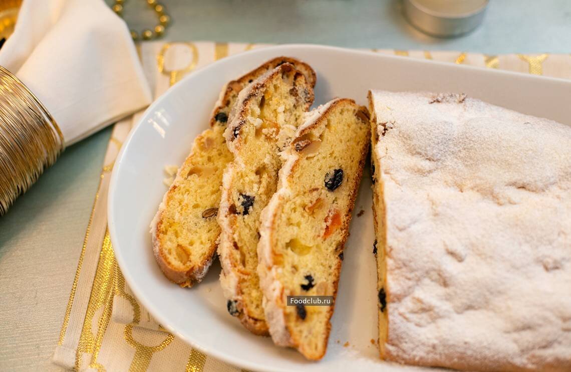 Творожный штоллен В отличие от традиционного дрожжевого штоллена, его творожный собрат намного менее калорийный, быстрее и проще готовится и он не требует длительной выдержки перед употреблением. Если вы по каким-то причинам не решаетесь на классический вариант — приготовьте этот!