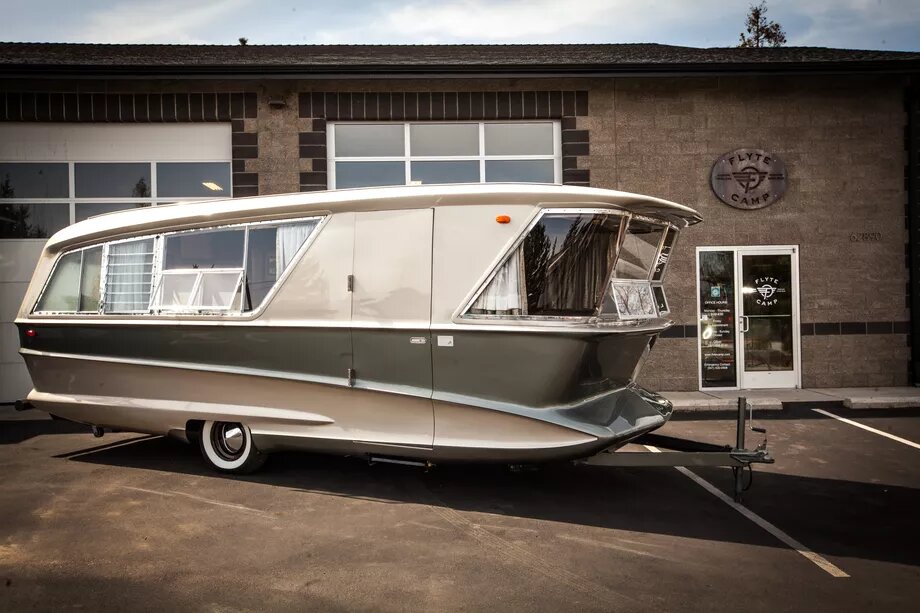 Нечасто можно увидеть современный кемпер, созданный в стиле 60-х годов прошлого века. Но сегодня наш счастливый день. Holiday House Geographic - это винтажный туристический трейлер, созданный еще 1960-х годах. Произведенный всего в двух экземплярах Holiday House Geographic был разработан всемирно известным промышленным инженером Чаком Пелли. Он был сделан из алюминия и дерева и стоил в 1962 году $8,500, что эквивалентно сегодняшним $71,000, или почти 4,8 млн рублей по сегодняшнему курсу. Но произошло несчастье: завод компании Holiday House полностью сгорел в 1962 году, что сделало этот прицеп одним из самых редких в мире. Один из сохранившихся до наших дней кемперов был найден и полностью реконструирован с использованием современного оборудования американской компанией Flyte Camp. Снаружи кузов окрасили в цвета шампанского и зеленого мха, а шасси получило новые оси, тормоза, колеса и шины. Внутри трейлер отделан натуральным темным деревом ореха, который придает ему темный уют. Шкафы и
